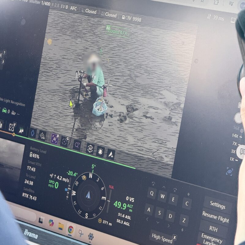 警告メッセージを再生し巡回飛行させる過程で、貝の採取目的で来ていた人が4~5名撤収していくのが目撃され、抑止効果があることが確認できました。