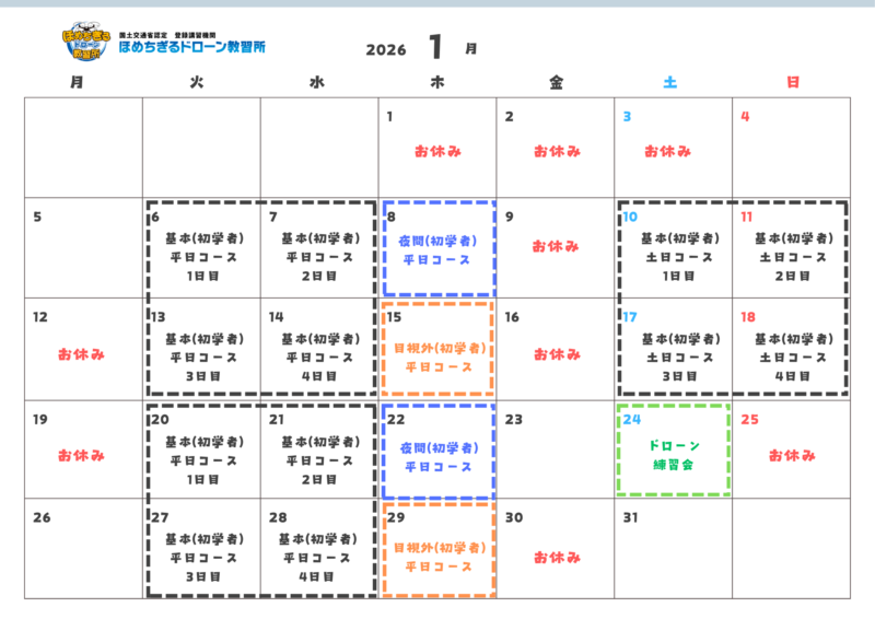 2025年12月/2026年1月 開催の講習スケジュールです